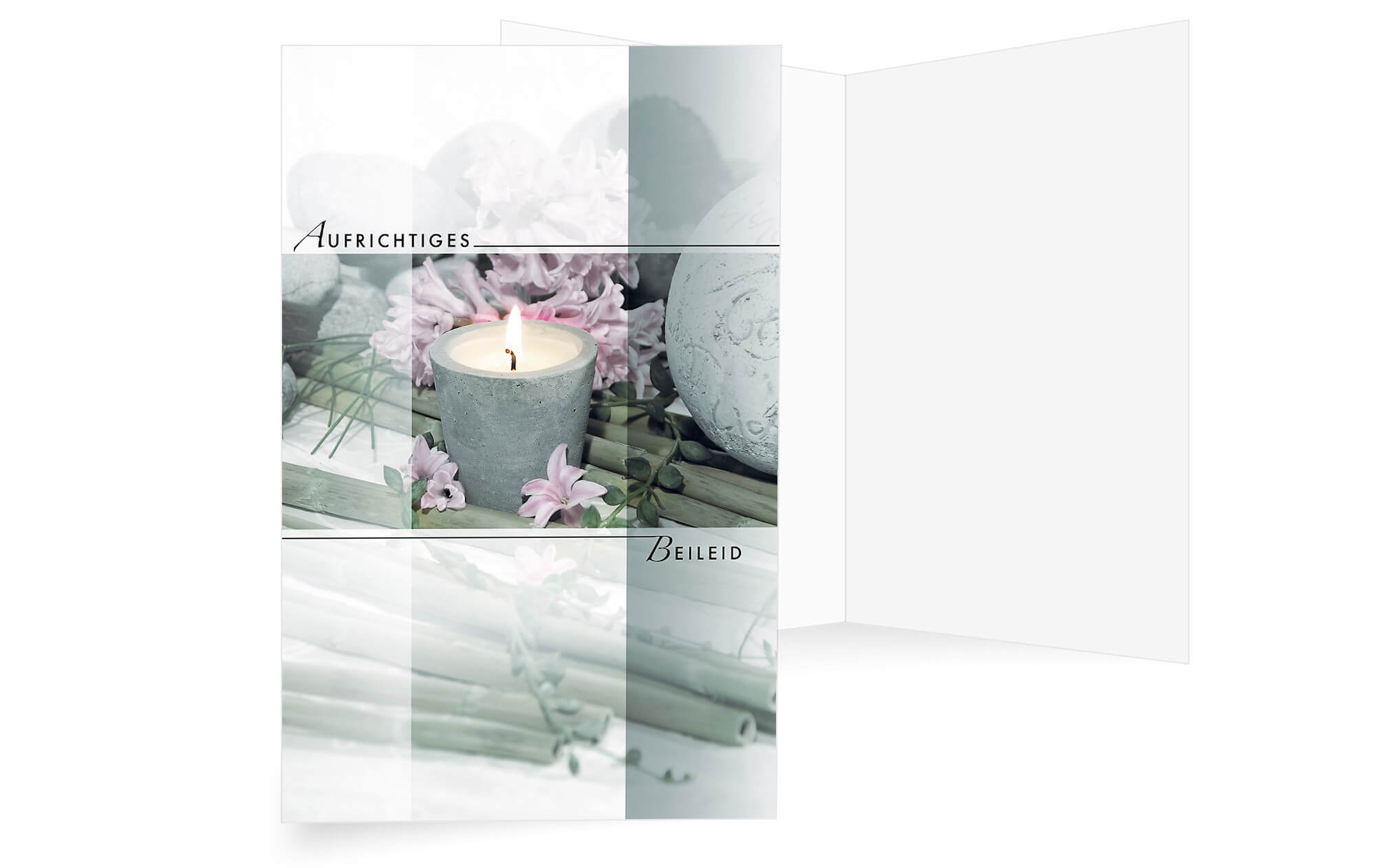Kondolenzkarte "Erinnerung" mit brennender Kerze, Spruch und "Aufrichtiges Beileid".