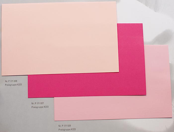 Blankokarte aus hochwertigem, pinkfarbenem Design-Karton mit leichter Linien-Struktur.