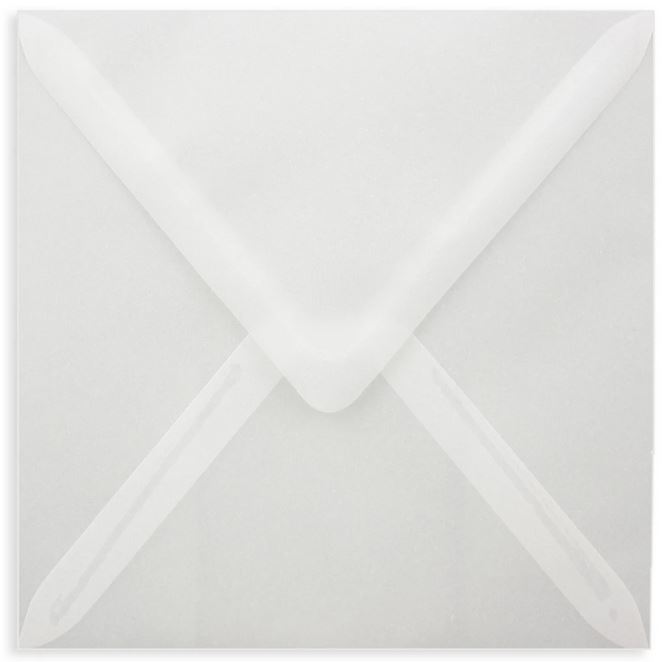 Briefumschlag transparent-weiss 155x155 mm mit spitzer Klappe und Nassklebung.