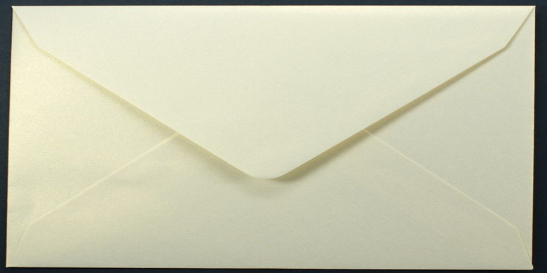 Edler Briefumschlag im DIN lang Format, aus perlmuttfarbenem 120g Metallic-Papier mit Nassklebung.