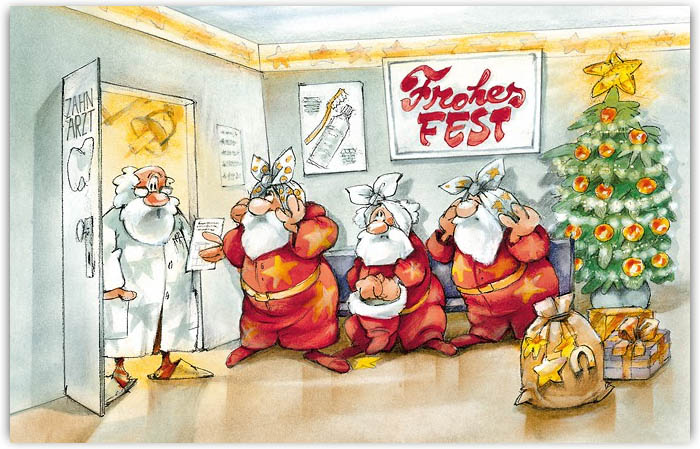 Heitere Weihnachtskarte für Zahnärzte, Dentist, Kieferchirurgie, Kieferorthopädie mit Weihnachtsgruß "Frohes Fest".
