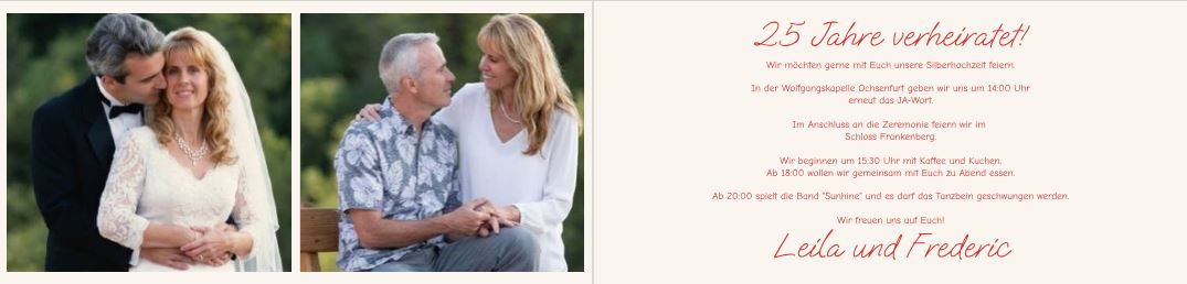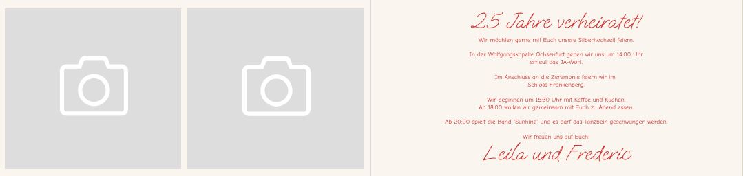 Auf dem Falt-Einlegeblatt kann auf der linken und rechten Innenseite Ihr Einladungstext sowie Fotos eingedruckt werden.