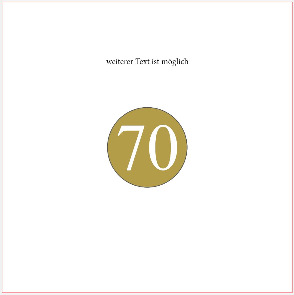 Die Zahl 70 in der Mitte der Karte sticht ins Auge und Ihre Gäste können sich auf ein schönes Geburtstagsfest freuen.