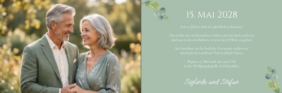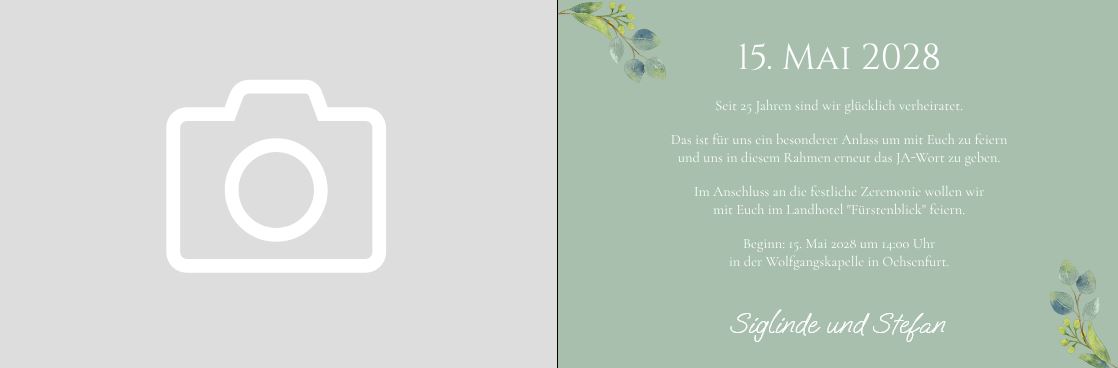 Einladungskarte zur Silberhochzeit "Eukalyptus-Traum" mit eigenem Foto und individuellem Text
