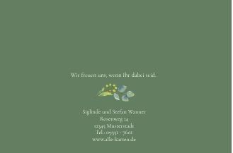 Silberhochzeit-Einladungskarte in salbeigrün als Klappkarte mit floralem Druck.