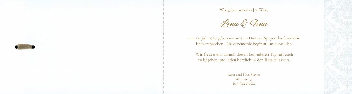 Die Hochzeitskarte wird nach links aufgeklappt.