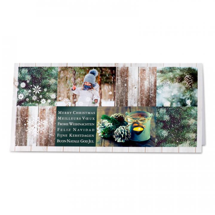 Weihnachtskarte aus weißem Designkarton mit Farbdruck und partieller Glanzlackierung.