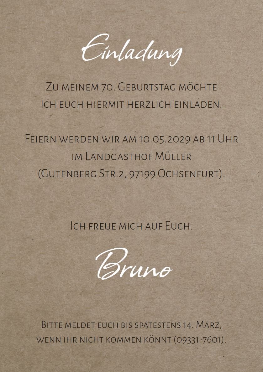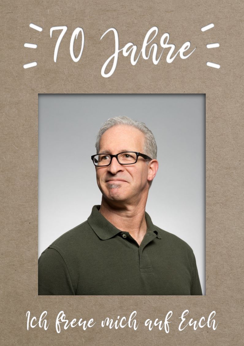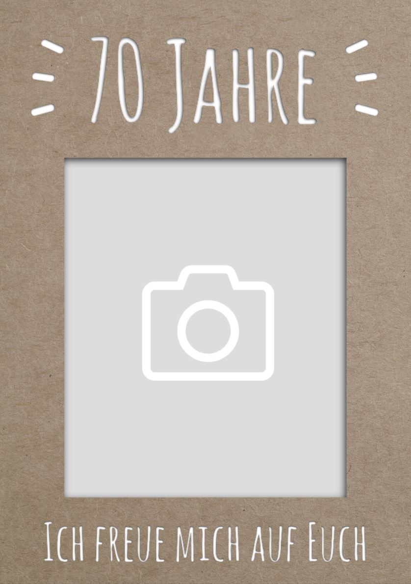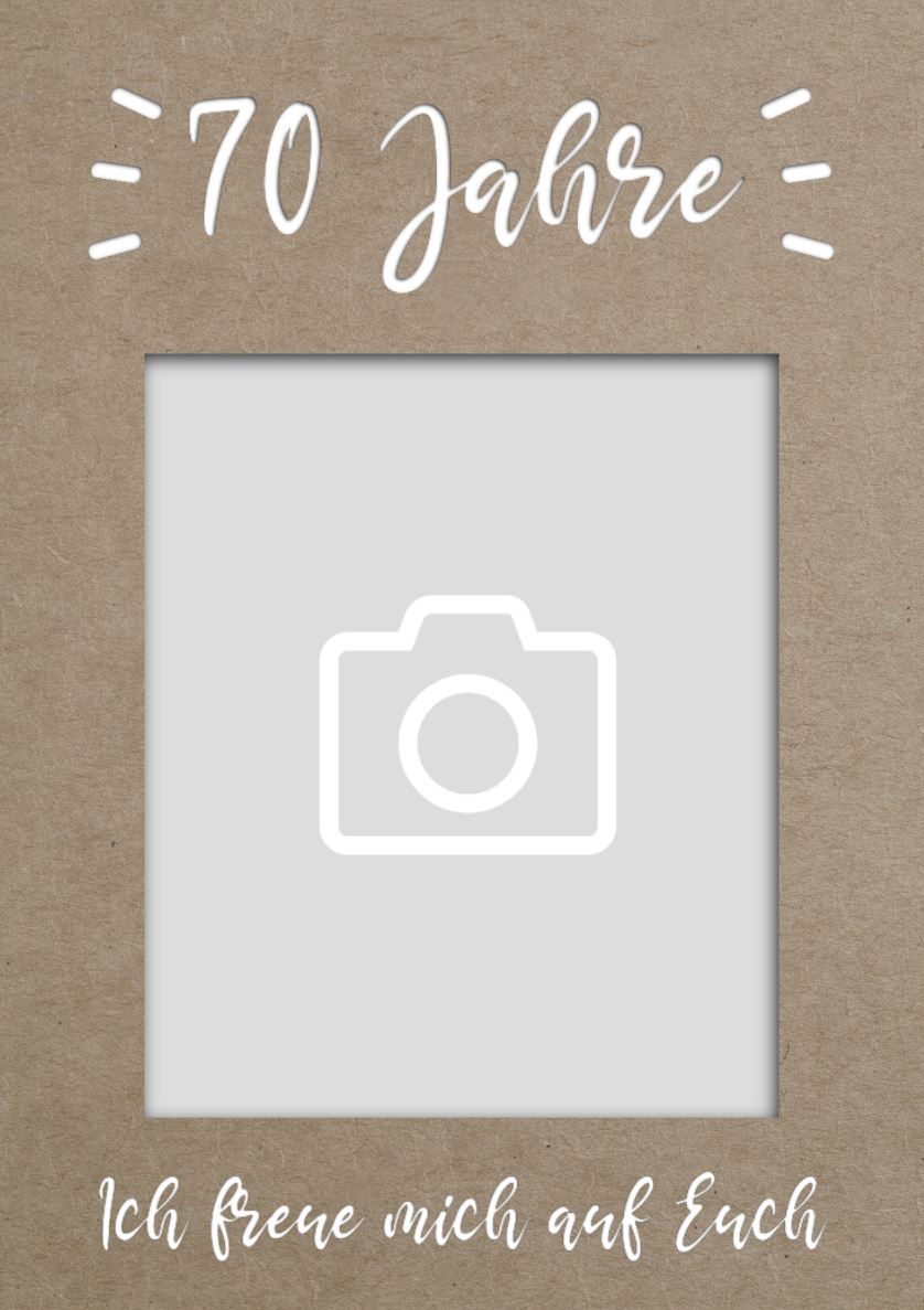 Foto-Einladungskarte zum 70. Geburtstag in Kraftkarton-Optik, individuell zu gestalten, mit Briefumschlag