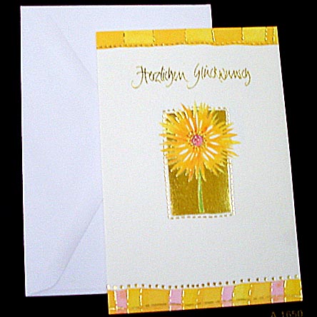 Diese Karte kann auch ohne dem Aufdruck "Herzlichen Glückwunsch" unter der Artikelnummer 1650/0 bestellt werden.