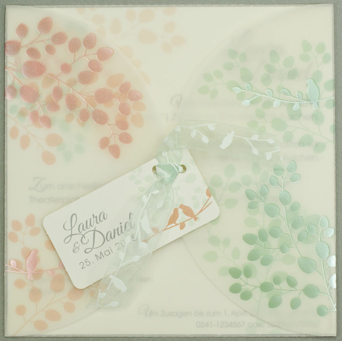 Hochzeitskarte quadratisch Transparent Vögel Zweige ba723126