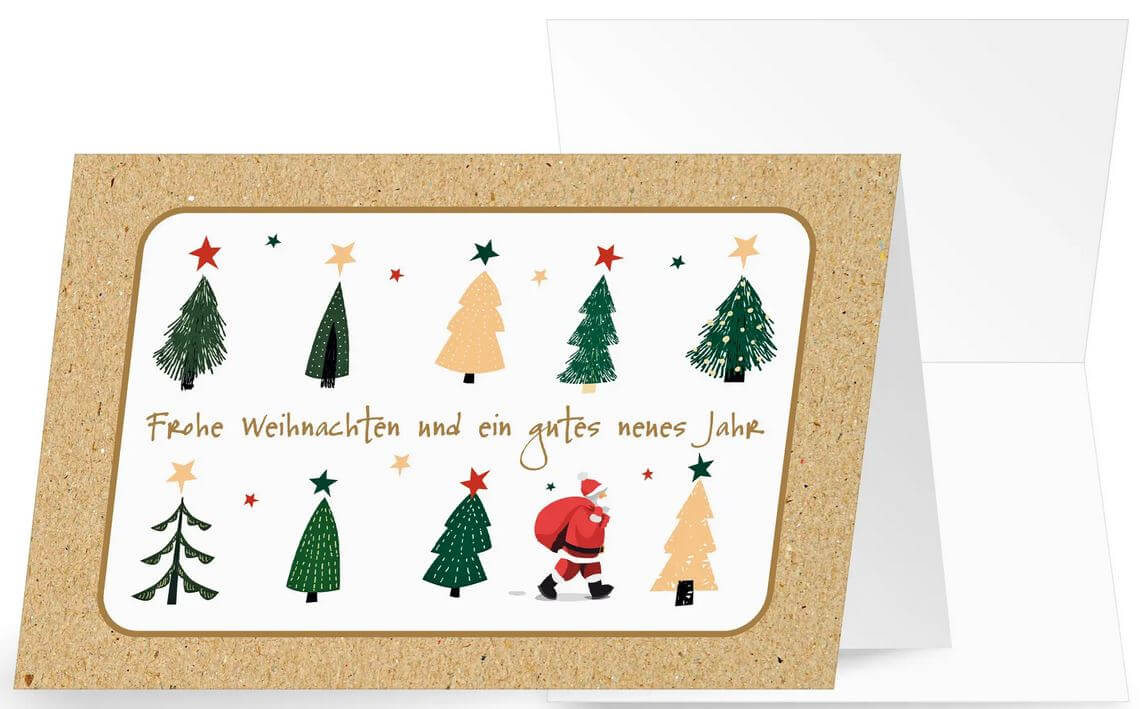 Gerne bedrucken wir Ihnen die Weihnachtskarte innen mit individuellen Weihnachtsgrüßen, Firmenlogo oder Unterschriften.