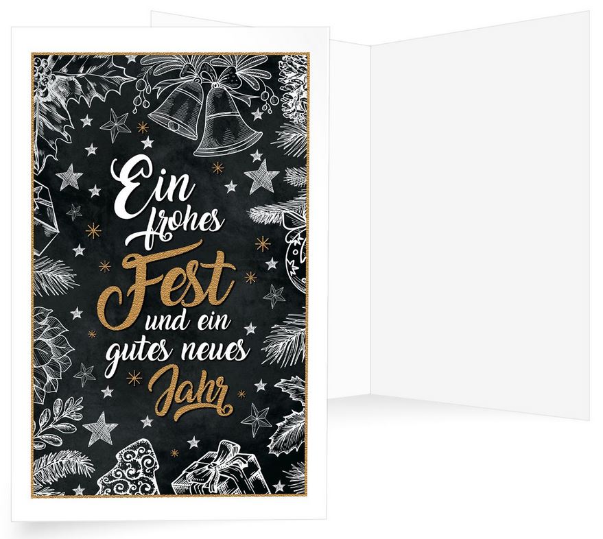Gerne bedrucken wir Ihnen die Weihnachtskarte auf den Innenseiten mit individuellen Weihnachtsgrüßen, Firmenlogo oder Unterschriften.