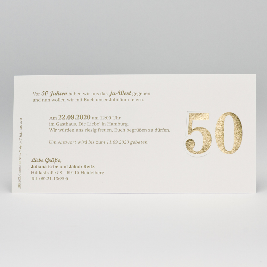 Jubiläumskarte 50 Jahre perlmutt metallic Goldfolienprägung