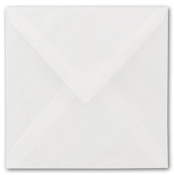Transparente Briefumschläge weiß oder farbig, quadratisch und rechteckig, haftklebend, selbstklebend oder nassklebend aus Transparentpapier.
