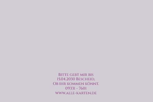Einladungskarte zum 50. Geburtstag in flieder im modernen Design als Klappkarte mit individuellem Text und Foto
