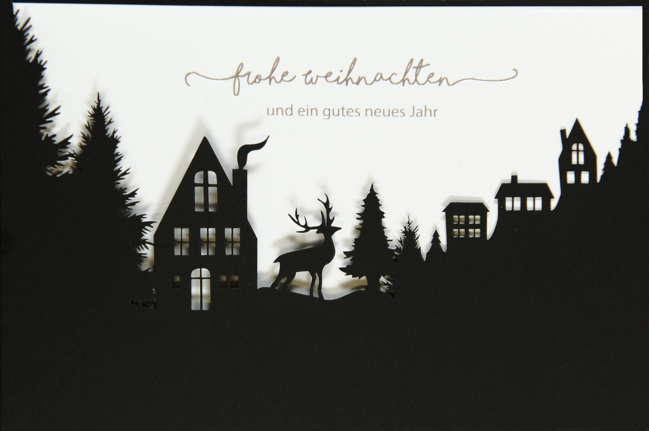 Durch unsere langjährige Erfahrung können wir Ihre Wünsche umsetzen und Sie werden viel Freude an der fertig bedruckten Weihnachtskarte haben.