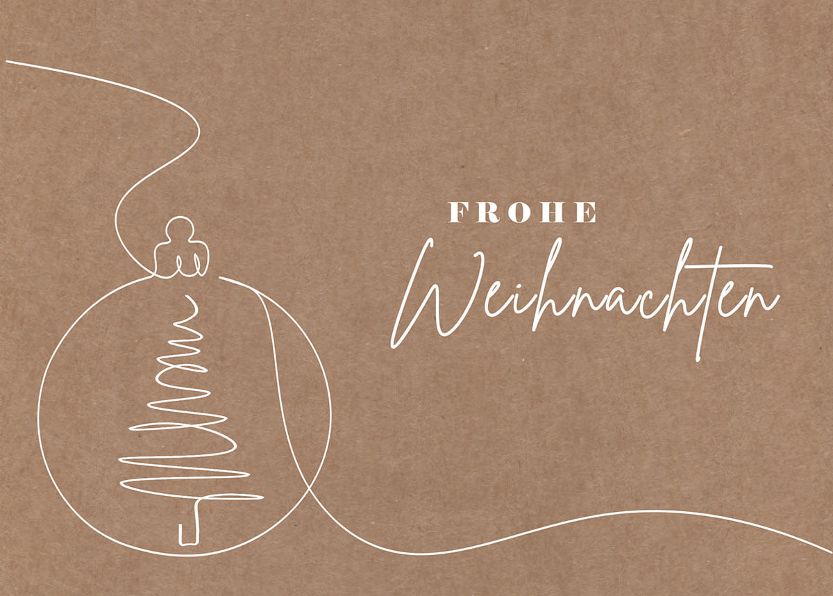 Weihnachtskarte im Querformat aus braunem Naturkarton mit cremeweißem Falteinleger.