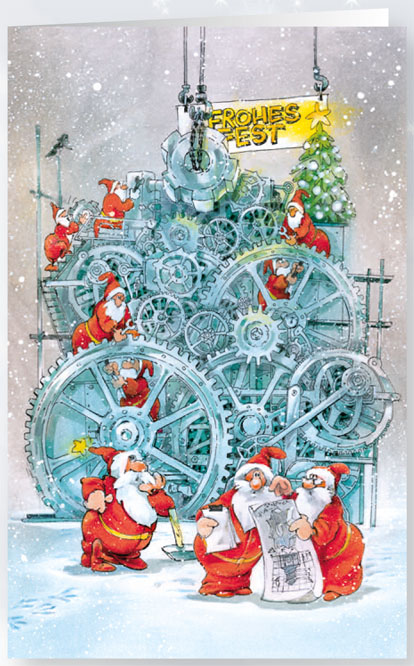 Originelle Branchenkarte für Metall- und Maschinenbau mit Weihnachtsgruß