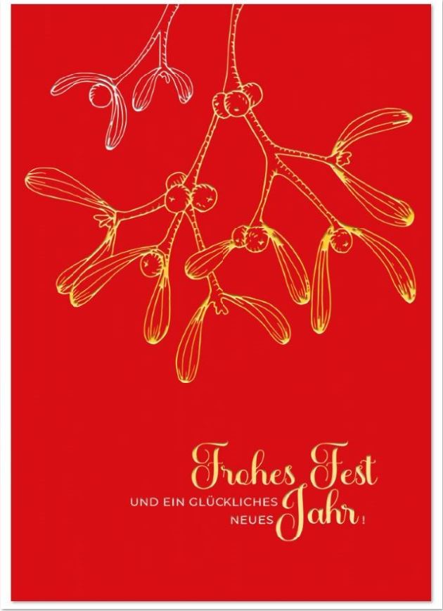 Der Weihnachtsgruß "Frohe Weihnachten" und weitere Grüße sind in englisch, italienisch, spanisch, französisch und portugiesisch auf die Karte gedruckt.