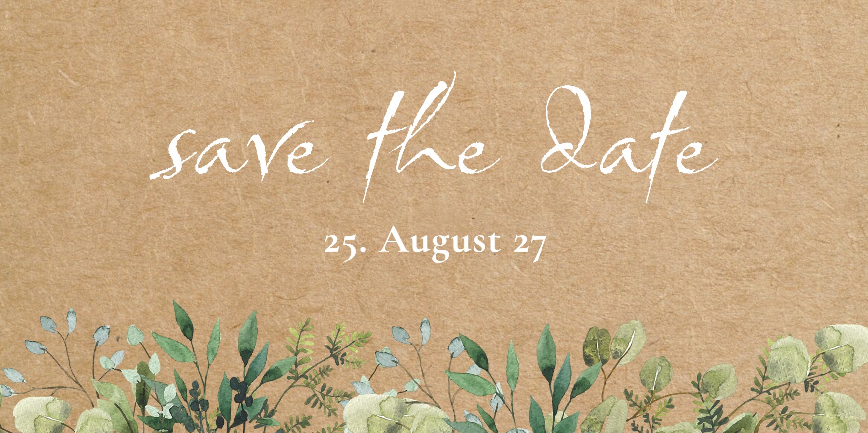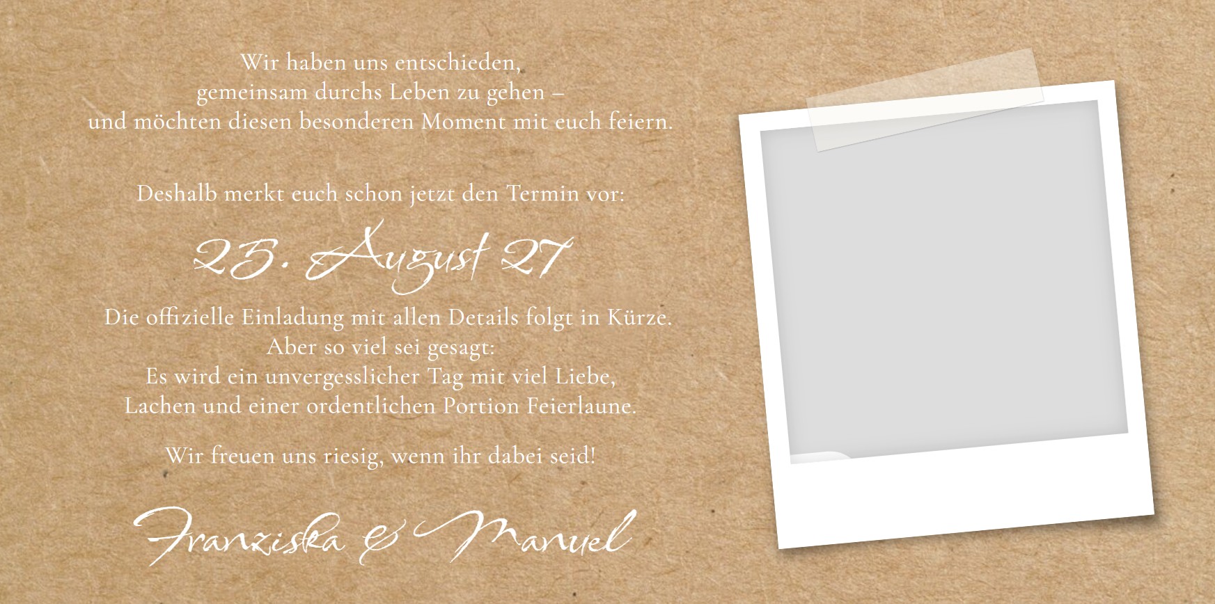 Save the Date Karte in Kraftkarton-Optik mit eigenem Foto und floralem Motiv