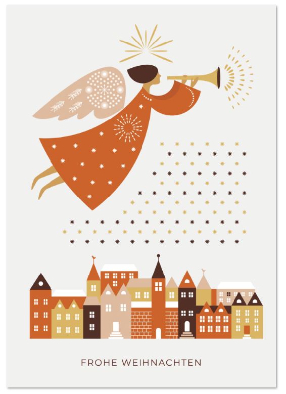 Das Einlegeblatt kann individuell mit Ihrem Weihnachtsgruß bedruckt werden. Auch der Eindruck von Firmenlogo oder Unterschriften ist möglich.