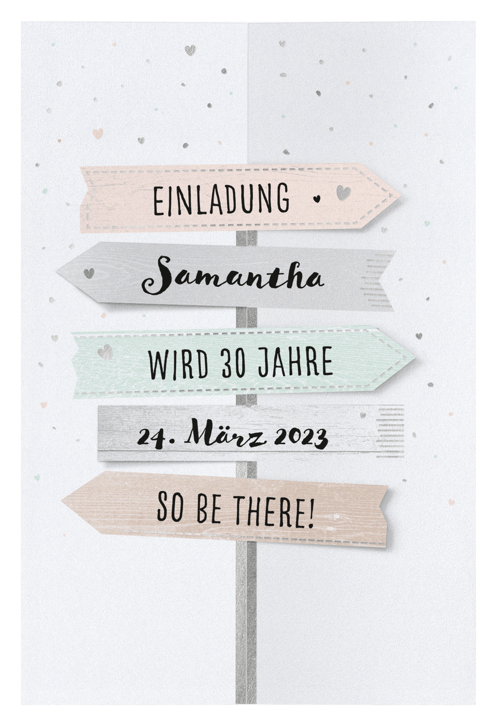 Das Wort "Einladung" und das Datum auf unserem Beispielfoto sind noch nicht vorgedruckt und nur ein Gestaltungsvorschlag.