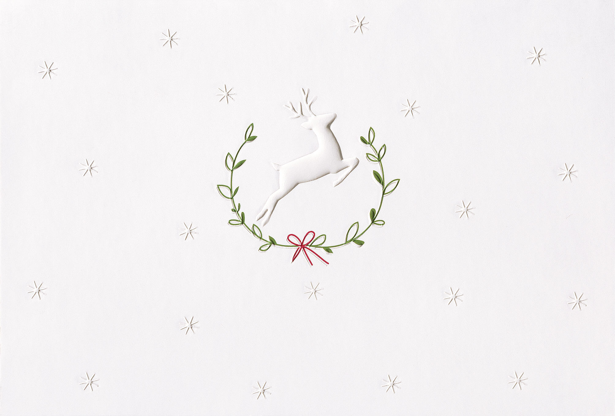 Stilvolle Grußkarte in weiß mit einem Hirsch in kupferner Prägung