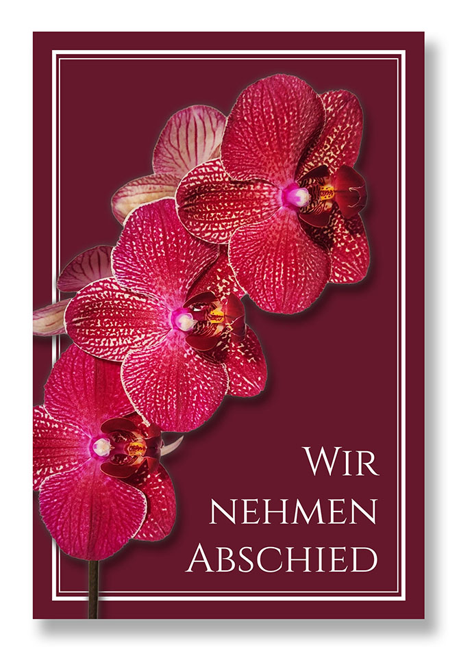 Erinnerungsbildchen / Trauer-Abschiedkärtchen mit Orchideenblüte, mit oder ohne Spruch "Wir nehmen Abschied".
