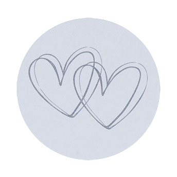 Preis für 1 Bogen mit 10 runden (d=35mm) Siegelaufklebern Motiv "silberne Herzen".