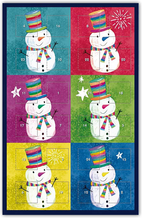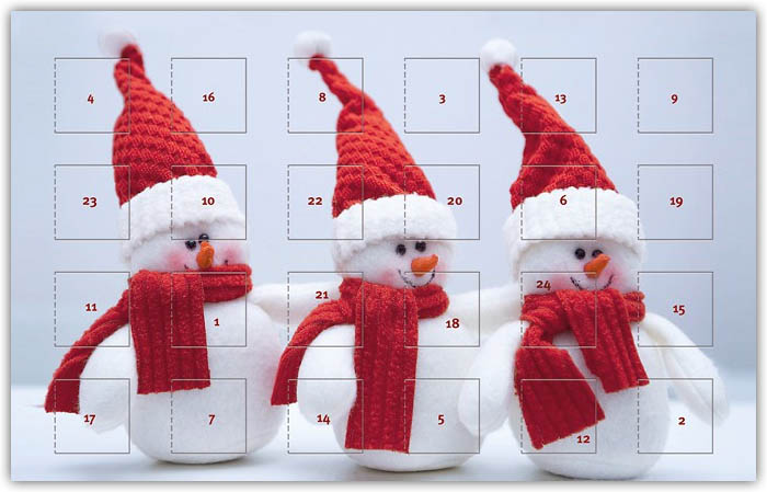 Ausgefallene Weihnachtskarten mit 24 Adventskalender Türchen, 24 Tage im Blick Ihrer Kunden.