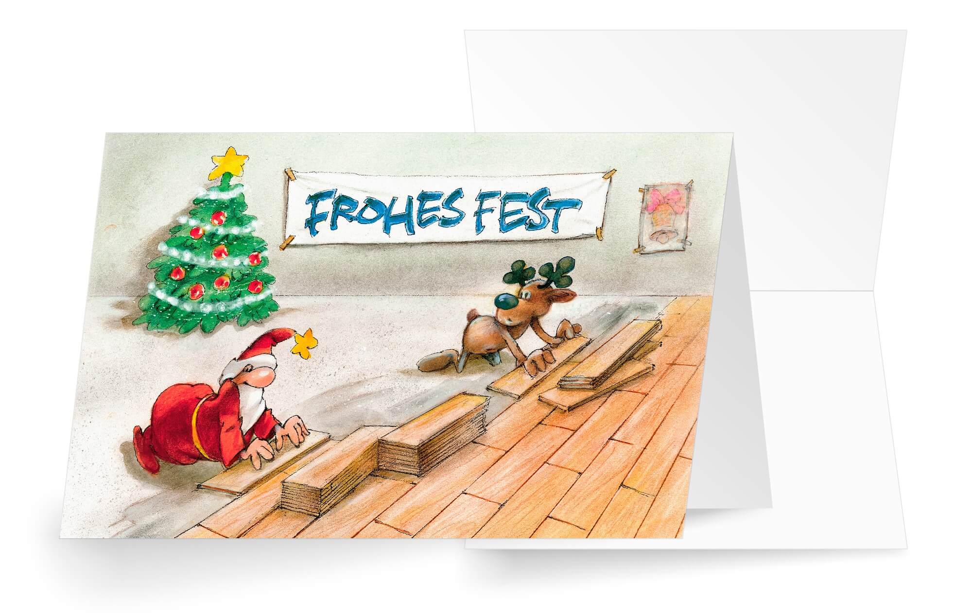 Originelle Branchenkarte als Weihnachtskarte für Parkettleger und Firmen für Bodenverlegung aller Art.
