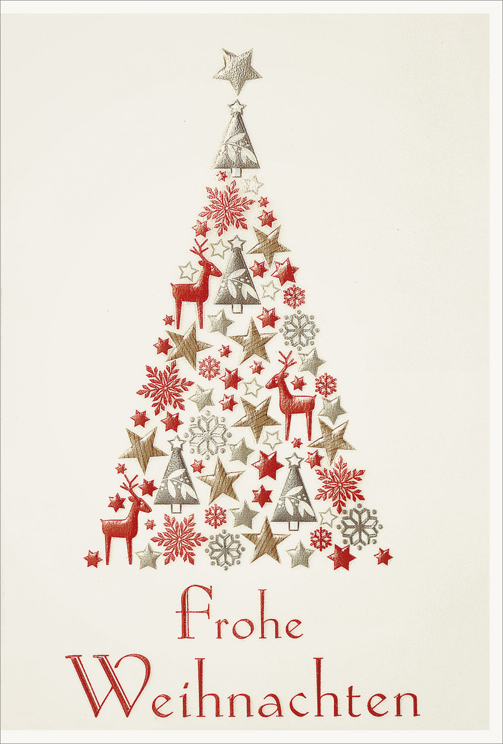 Weihnachtskarte Frohe Weihnachten mit Weihnachtsbaum aus Symbolen